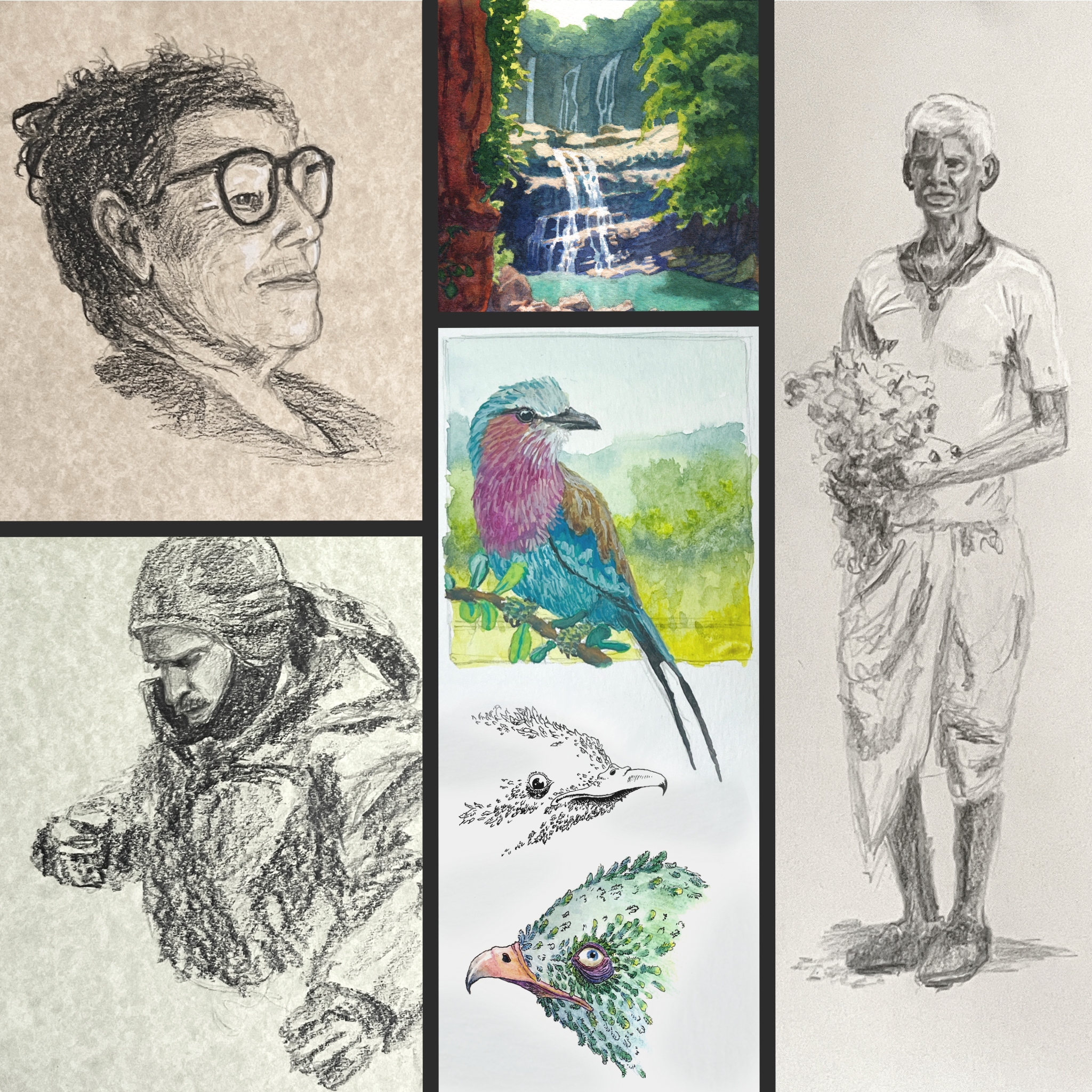 I am a professional artist best-known for my work in watercolor, pencil, gouache and acrylic. My artwork is on display in collectors’ homes across the US and beyond. I have also had the honor of creating vibrant illustrations for children’s books, lecture presentations, music albums, and a book of limericks held in special collection at a university.